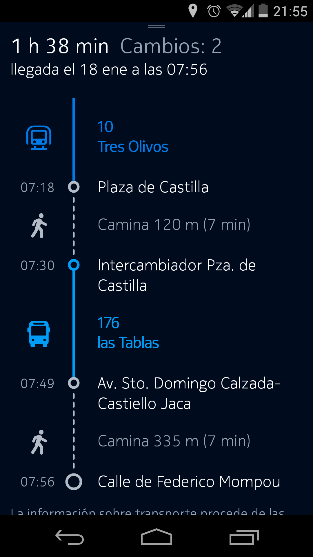 - Solo he notado un pequeño problema, cuando pides las rutas a un destino, para pasar de una a otra hay que deslizar de izquierda a derecha o de derecha a izquierda, para pasar de una opción a otra, esto me costo un poco averiguarlo.